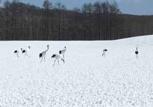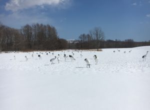 求愛ダンスも見られました。写真はもっときれいなサイト様があると思うのでそちらで。バズーカみたいな望遠レンズで写真を撮っている人もたくさんいました。真っ白な雪原にツルが舞い降りたり、飛び立ったり、踊ったりとまさにツルの楽園のような場所でした。一見の価値はあると思います。